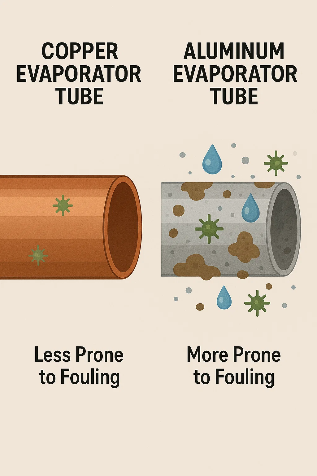 | Katangian | Tanso Evaporator Tubes | Aluminyo Evaporator Tubes |