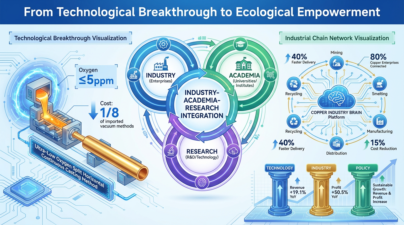 Ang innovation model sa industriya ng copper tube ay lumilipat mula sa "single-point R&D" patungo sa "system integration. " Ang matagumpay na pakikipagtulungan sa pagitan ng Jiangxi Naile Copper Co., Ltd. at Nanchang University ay nagpapakita ng malalim na industriya-akademya-research integration ay naganap ng pagtatatag ng tatlong mga epekto: pagtutugma ng demand, pagsasama ng pagsunod, at pagbabahagi ng likas. harapin ang hamon sa industriya ng pagkamit ng nilalamang oxygen na ≤5ppm sa mga copper tube para sa mga semiconductor, bumuo ng pinagsamang klub ng unibersidad-enterprise ng isang "ultra-low oxygen split horizontal continuous casting method," na binabawasan ang mga gastos sa isang-ikawalo ng mga na-import na pamamaraan para sa vacuum. Gayunpaman, ang pagpapalabas ng halaga ng teknolohikal na tagumpay na ito ay naganap ng industrial chain synergy—ginamit ito ng Naile Copper para makapasok sa pandaigdigang chip labas ng supply chain, na nagpapataas ng mga bayarin sa antas ng anim na beses.