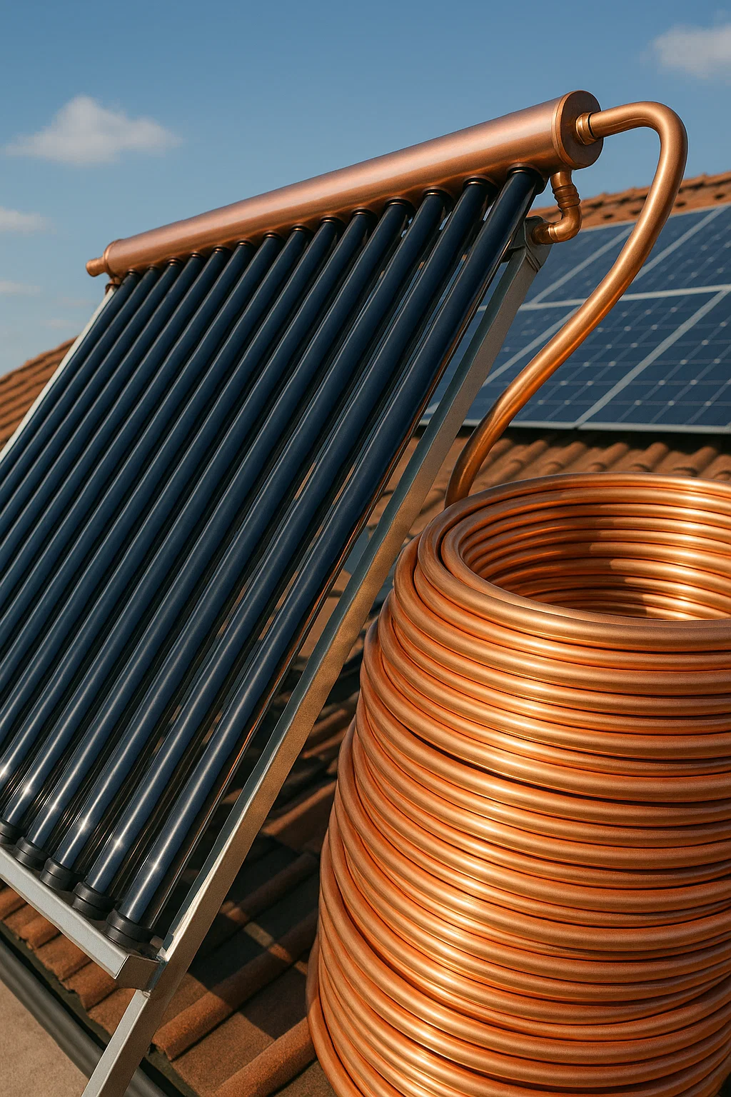 Sa tumataas na demand para sa nababagong enerhiya, ang mga tubo ng tanso ay nakakakuha ng katanyagan sa mga solar thermal system. Ang mahusay na conductivity ng tanso ay ginagawang isang mainam na materyal para sa pagkolekta ng solar energy at pag -convert ito sa thermal energy para sa pagpainit ng tubig. Ang paggamit ng mga tubo ng tanso sa mga kolektor ng solar ay nagpapabuti ng kahusayan at pagganap, na tumutulong upang mabawasan ang pag -asa sa maginoo na mga mapagkukunan ng enerhiya at nag -aambag sa greener, mas napapanatiling pamumuhay. Ang mga katangian na lumalaban sa kaagnasan ng tanso ay matiyak na ang kahabaan ng buhay at pagiging maaasahan ng mga solar thermal system.