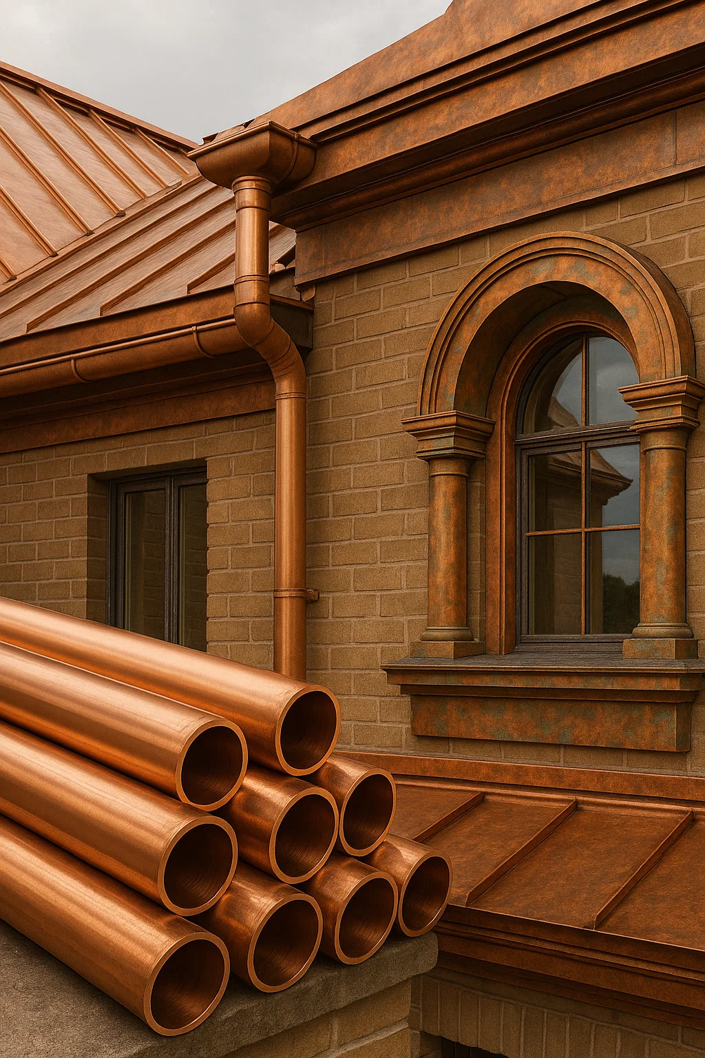 Sa industriya ng konstruksyon, ang mga tubo ng tanso ay ginagamit para sa parehong mga layunin at aesthetic na layunin. Sa mga disenyo ng arkitektura, ang tanso ay pinahahalagahan para sa kaakit -akit na hitsura nito, lalo na kung nakalantad sa pag -init ng panahon, na nagbibigay ito ng isang natatanging patina. Ang mga tubo ng tanso ay karaniwang ginagamit sa bubong, mga sistema ng kanal, at mga pandekorasyon na tampok. Ang kahabaan ng tanso, kasabay ng paglaban nito sa pag -iingat, kaagnasan, at apoy, tinitiyak na ang mga gusali na nilagyan ng mga elemento ng tanso ay nagpapanatili ng kanilang istruktura na integridad at aesthetic apela sa paglipas ng panahon.