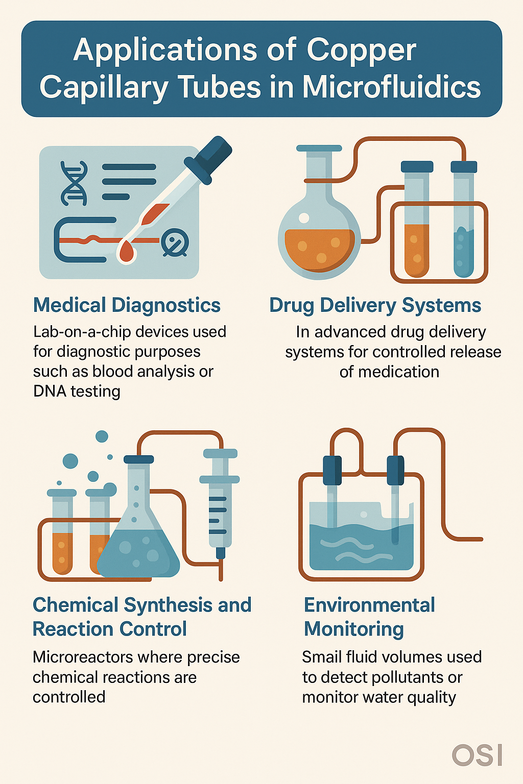 Bukod dito, ang tanso ay may intrinsic Mga katangian ng antimicrobial Pinipigilan nito ang paglaki ng bakterya at fungi. Ang tampok na ito ay partikular na mahalaga sa mga medikal na diagnostic, kung saan ang kontaminasyon ay maaaring humantong sa hindi tumpak na mga resulta. Sa pamamagitan ng paggamit Copper capillary tubes , ang mga aparato ng microfluidic ay maaaring mabawasan ang panganib ng paglaki ng microbial, tinitiyak ang kalinisan at kawastuhan ng mga pag -andar ng aparato.