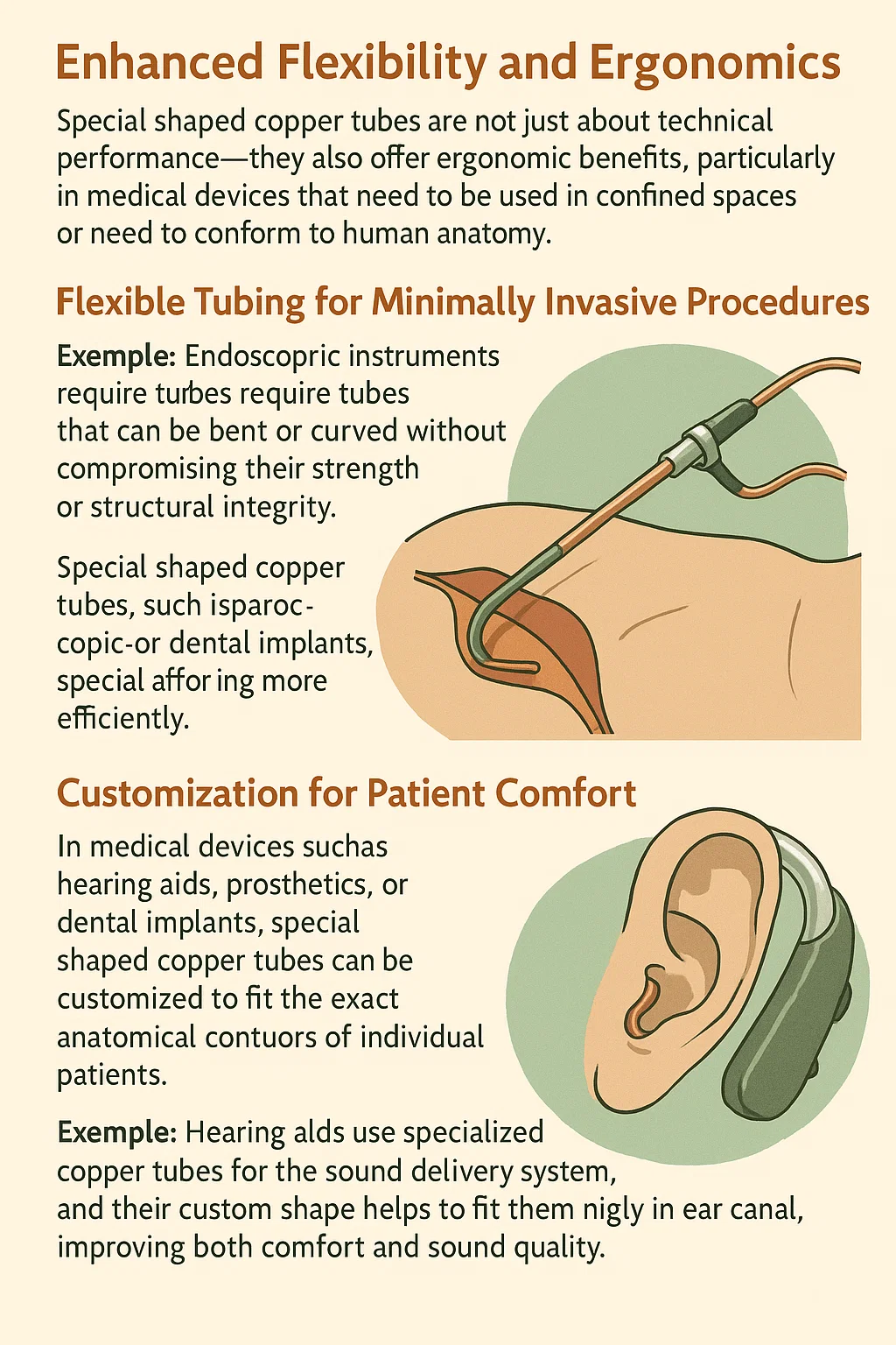 Ang natural na mga katangian ng antimicrobial ng tanso ay makakatulong na mabawasan ang panganib ng impeksyon sa Mga aparatong medikal na ginagamit sa o sa paligid ng katawan ng tao. Ang mga espesyal na hugis na tanso na tubo ay lalong ginagamit sa Catheters at iba pang mga medikal na instrumento kung saan kritikal ang kalinisan.